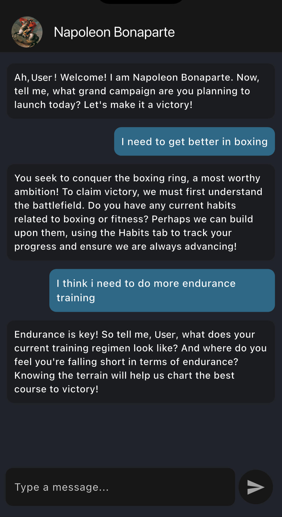 - Chat with the AI about your goals and progress