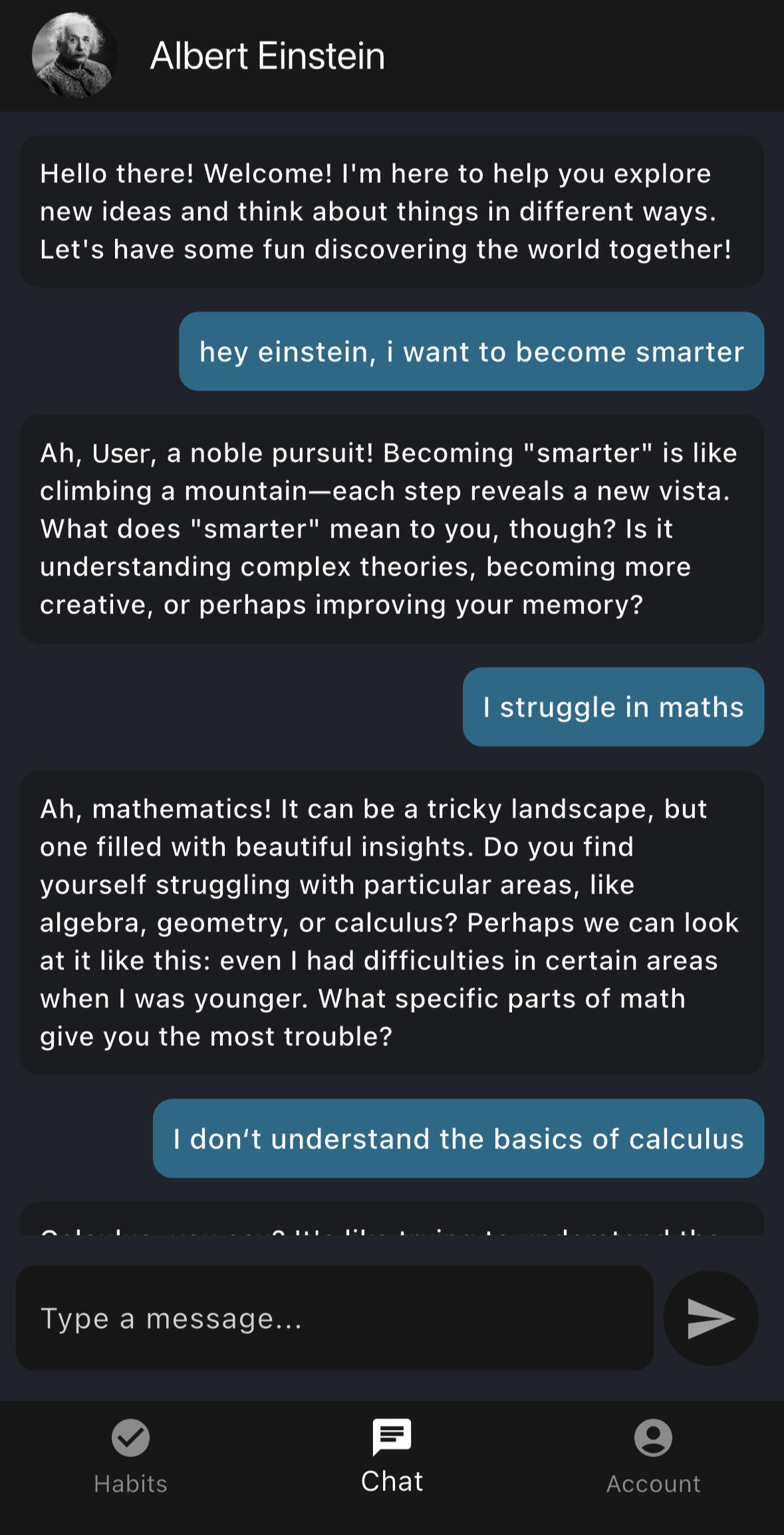 Craft a unique AI mentor, effortlessly track your habits, and engage in smart conversations to achieve your goals.